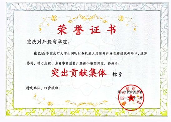 此次比赛,我院积极参加组织学生参与,与100余支团队、近400名师生竞争,荣获“突出贡献集体”称号。通过参与此次大赛,我校参赛学生的RPA设计及应用能力、数字化分析思维、财会知识等领域素养得到了全面锻炼,综合实践能力、团队协作能力和创新意识也有了显著提升,其中有一支队伍荣获三等奖。同时,此次参赛也为我校在数字化管理会计领域的教学和人才培养提供了宝贵经验,后续我校将继续深耕该领域,为培养适应新经济、新技术、新业态的高层次复合型、创新型、应用型、数字化财经人才而不断努力。