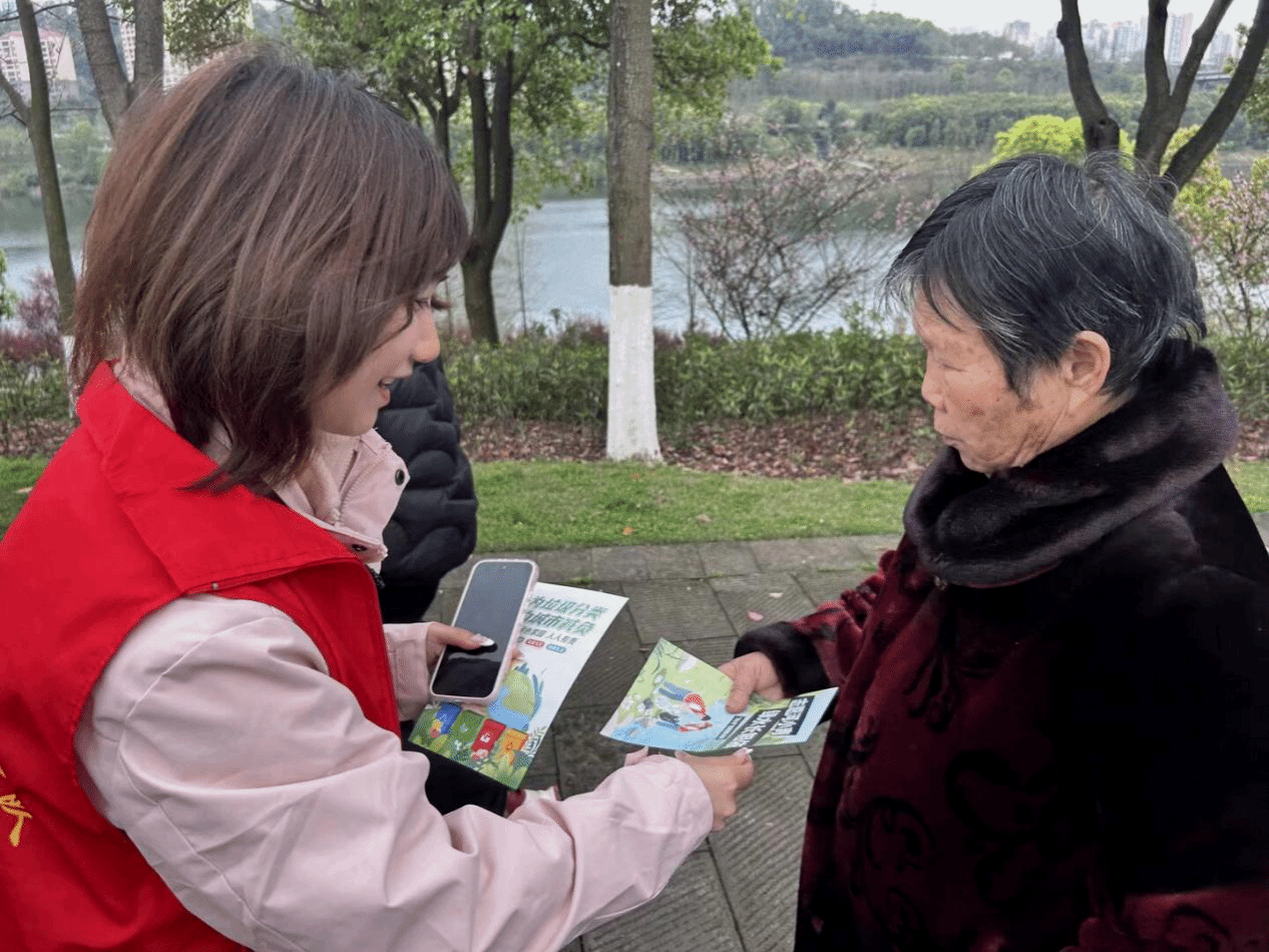 图为志愿者讲解并发放宣传单