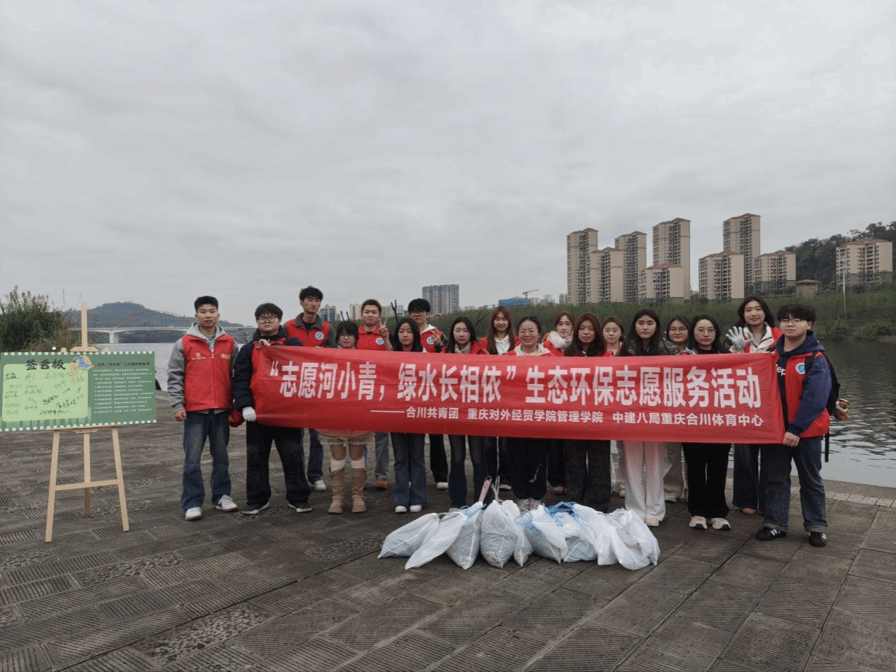 为深入学习贯彻习近平生态文明思想,引导青年群体树立生态环保意识,学院于3月19日在合川赵家渡水生态公园开展“志愿河小青 绿水长相依”志愿服务活动,以实际行动守护绿水青山。此活动由合川共青团主办,中建八局重庆合川体育中心、重庆对外经贸学院管理学院团总支委员会承办。