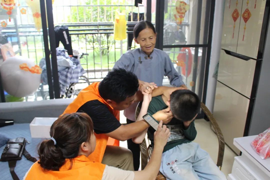 7月10日“筑梦前行 乡村振兴”美丽中国实践团旅游扶贫小组贵州荔波分队志愿者与荔波县樟江圆社区、县残联工作人员驱车赶到了板旺村,走入困难残疾人家庭、“一户多残”家庭,为这里的一级、二级残疾人士送来了面条、植物大豆油等爱心物品,跟进残疾人士的康复训练情况及身体健康状况,并表示今后会继续对社区里的残疾人士进行帮扶。