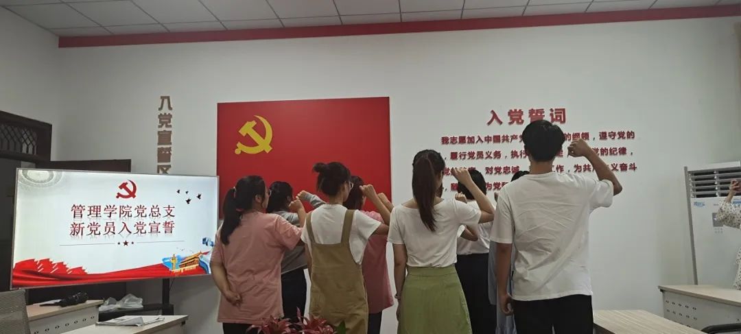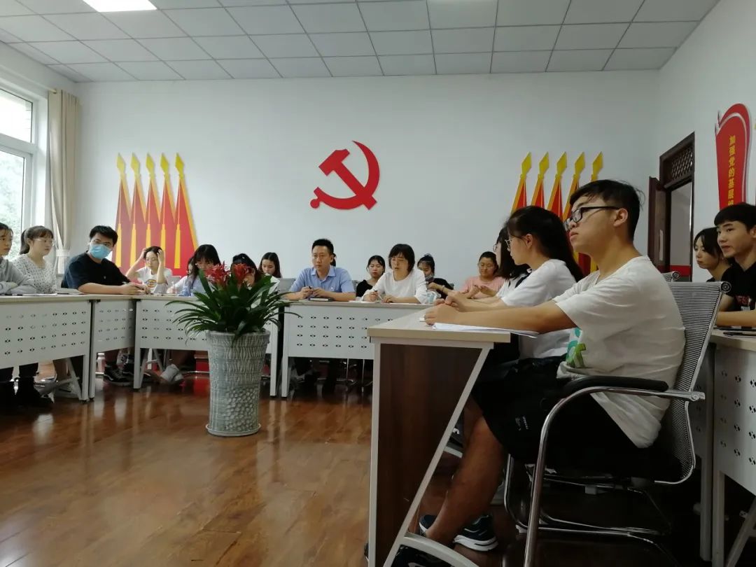 2020年7月1日下午管理学院党总支学生支部在学院党建活动中心——2404活动室举行全体党员大会,这里的青年们为党过了一次特别意义的生日。