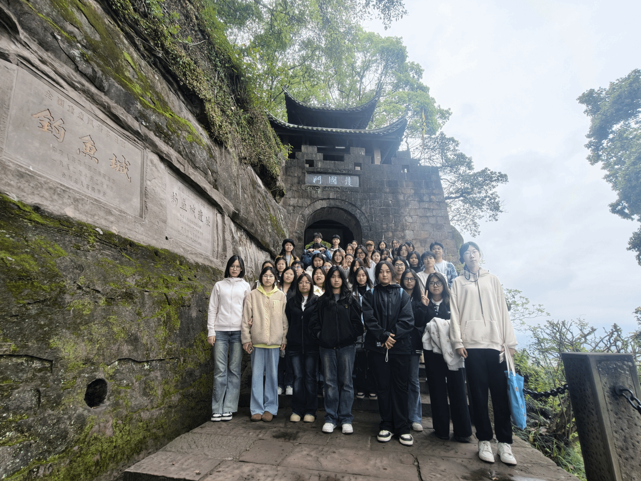 在景区企业导师邓思琪的带领下,同学们深入游览了钓鱼城核心区域,详细了解景区历史文化背景、空间布局及运营现状,为完善策划方案积累了宝贵的一手资料。