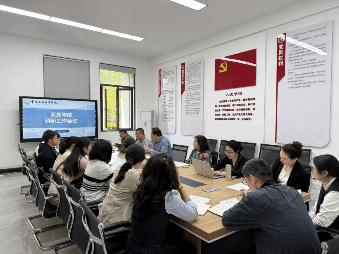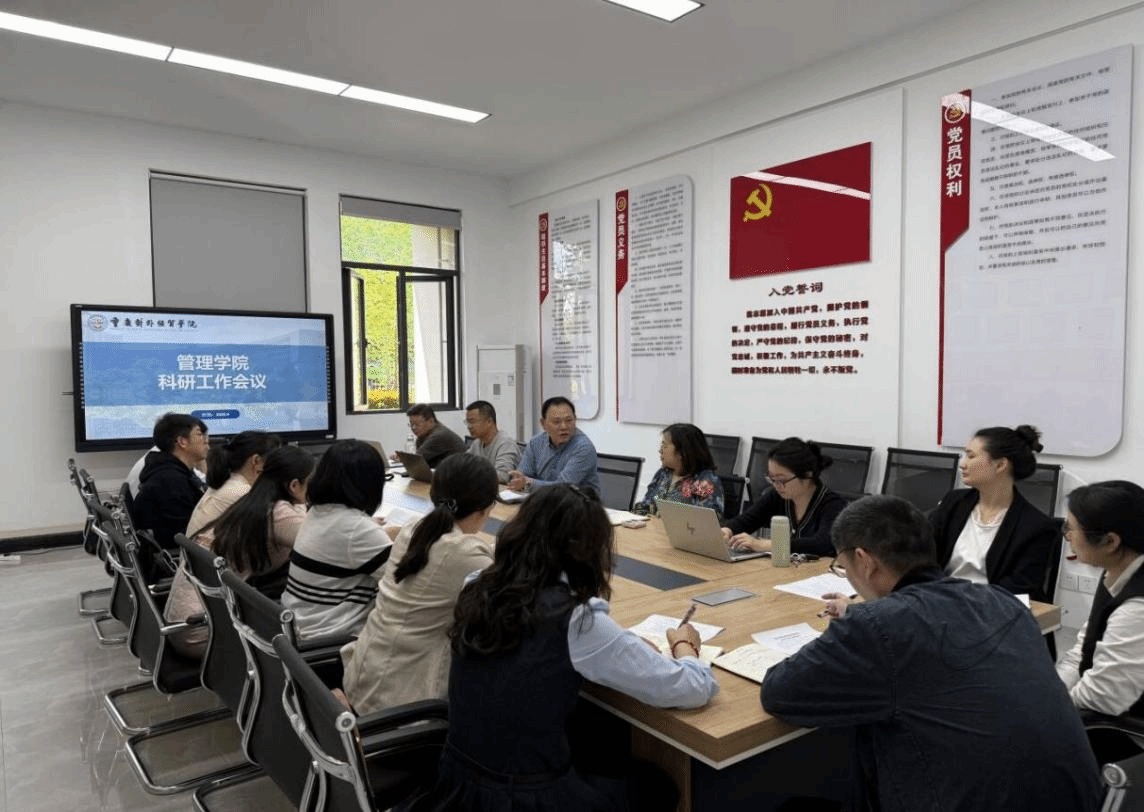 为进一步夯实科研工作基础,明确年度科研任务目标,压实科研工作责任,提升学院科研创新能力与学科建设水平,重庆对外经贸学院管理学院于2026年4月9日组织召开科研工作部署会。会议由院长陆林主持,副院长周艺、教科办主任杨子颖、各教研室主任、专业负责人及各科研平台负责人出席会议。
