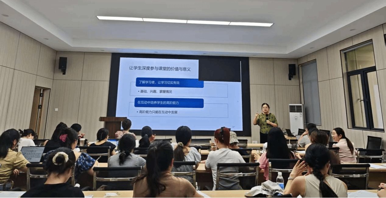 讲座中,周艺副院长设计了趣味小游戏,通过模拟课堂情境引导教师亲身体验BOPPPS模型的动态应用。老师们积极参与,在游戏中思考教学设计的深层逻辑。游戏结束后,周艺副院长揭晓游戏背后的教学深意,与会教师纷纷表示“恍然大悟”,对教学设计原理与实践以及模型的理解更加透彻。