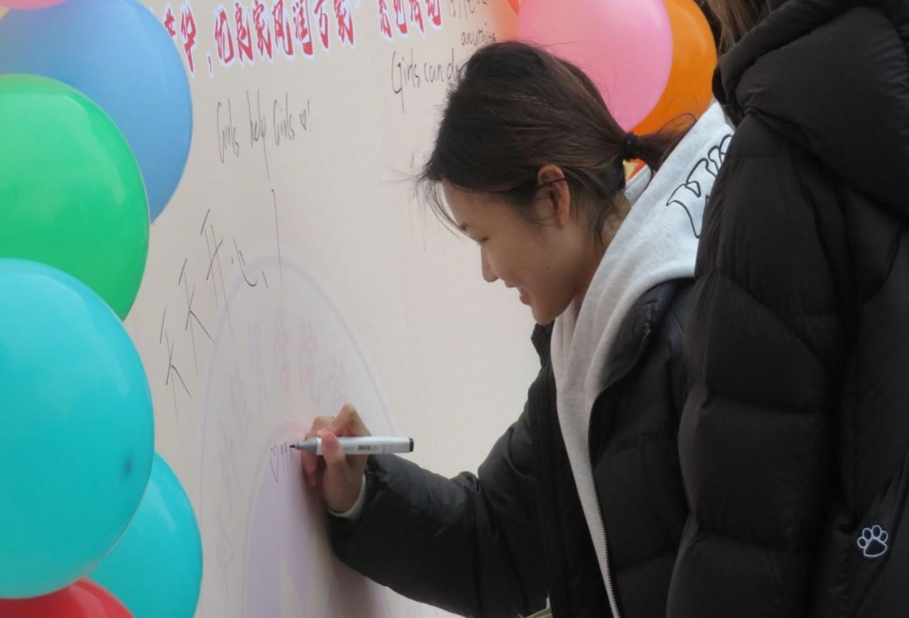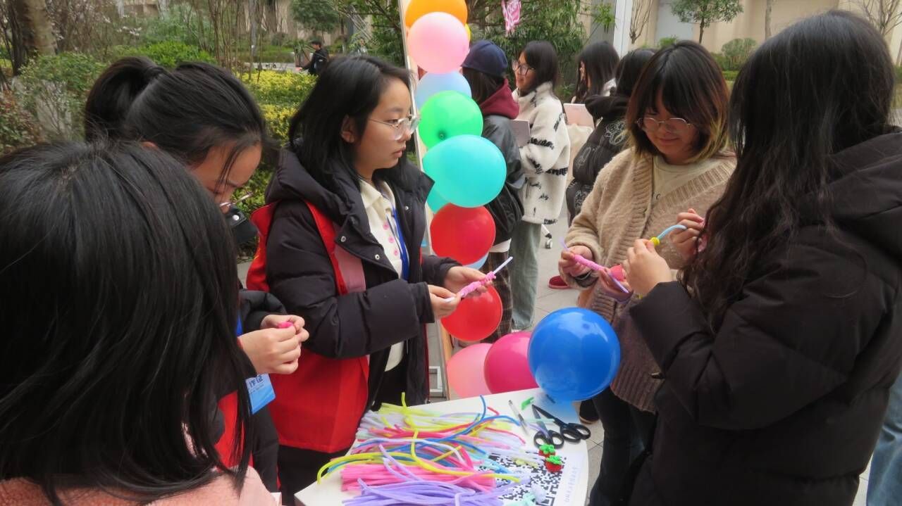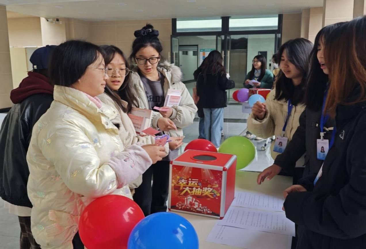 活动伊始,同学们有序来到起始点领取集章卡,就此开启这场充满趣味与文化气息的探索之旅;现场共设有六个主题游戏区域:“乡音巾帼”“谜颂芳华”“雅投传讯”“城韵探秘”“巧吹巾帼”“家训启智”,每一个区域都围满了人,现场热闹非凡,同学们踊跃参与,通过完成游戏进行集章;随后同学们凭借获取的印章兑换相应的套圈次数,套取心仪奖品,将活动气氛推向高潮;最后大家在签名墙上写下对女性的美好祝福以及对家乡的深情祝愿,定格下一张张笑脸。